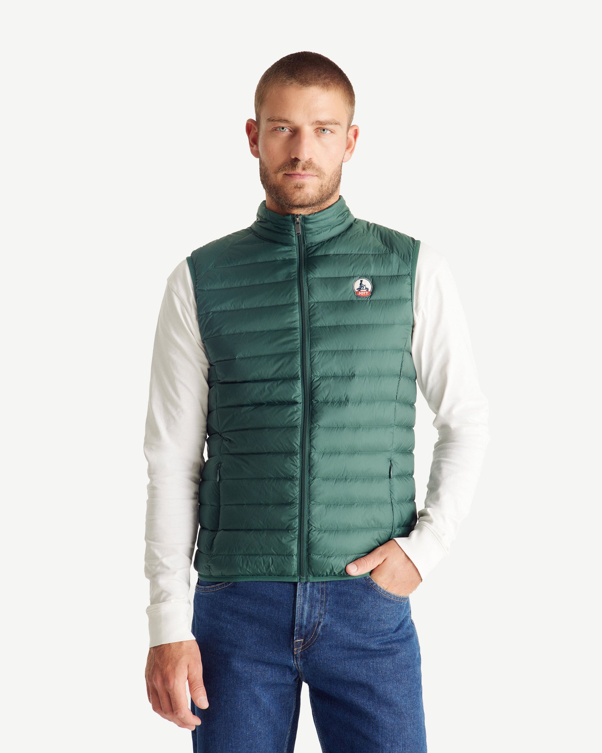 TOM, la doudoune légère sans manches iconique à petit col montant. Un must have à glisser sous toutes les vestes.