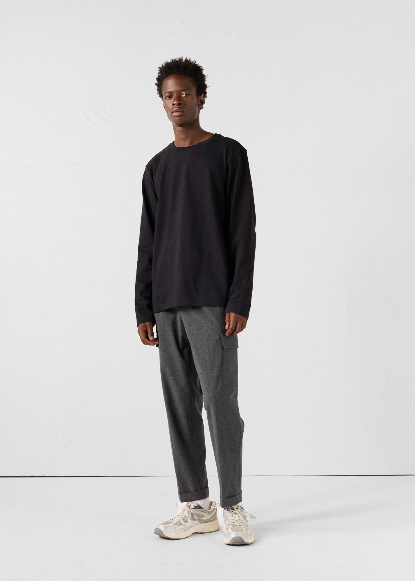 T-shirt à manches longues en jersey de coton épais, idéal pour un look casual et soigné. Son col rond classique et sa coupe regular en font une pièce facile à porter, seule ou sous une veste. Un basique du vestiaire masculin revisité dans une matière confortable, parfait pour la mi-saison.